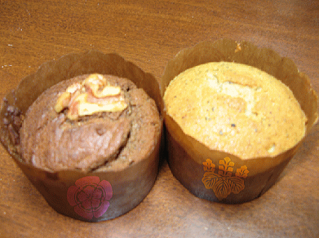 とはいえ、10個はさすがに作りすぎました。二種合計20個…内1個づつは試食で果て申した(切腹)手前はチョコマフィン、後ろは紅茶マフィンです。自分で作った割りには人間の食べれる味に出来ていたので安心しました(親指下向き…と見せかけて上向き)