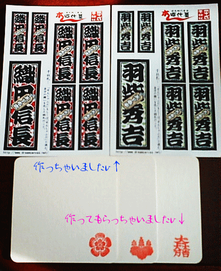 因みに信長の名前の間には「天下布武」、秀吉は「天下泰平」と入れてみました。あくまでも、おそろを意識(笑)