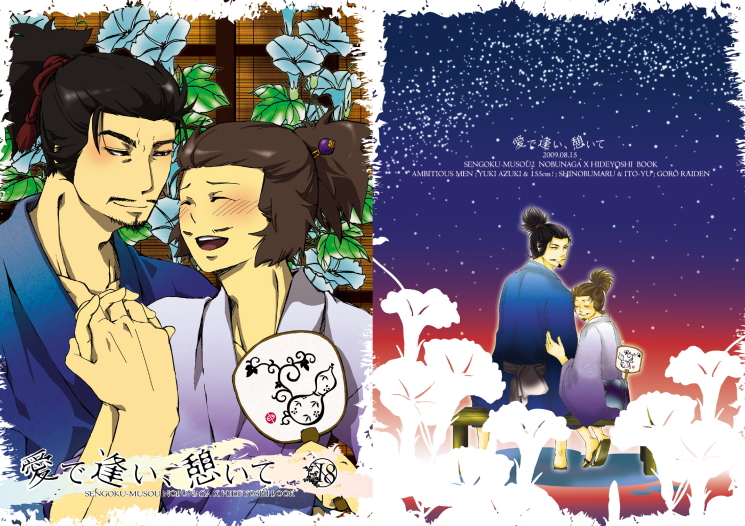 和風ぽく、和紙ぽく。素敵な表紙を描いてくれた二人には感謝なのだぜ…!!背景とかうちわの模様とか、色々合成できて楽しかったけど、着物の柄作りが一番楽しかったです(笑)