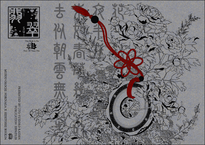 そんな具合です。表紙アップした二つは来月中にというか、オロチの本の方は2月に出しますんで今のうちに表紙作っておきました。いつもより中華風なテイストで作ってみましたけど、どーなんでしょう。相変わらずセンスのかけらもないです(笑顔で血涙)アップしてあるのはあくまでイメージなので、実際はもう少しくすんだり沈んだりするかも。