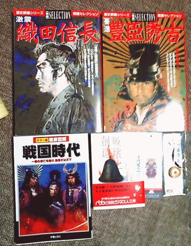 本当は戸部先生の前田利家を買うつもりだったんですが、うっかり童門先生の信長分析書を見たら信長の本なのに1ページにつき「藤吉郎」っ文字が三回も四回も出てくるからっ…ついっ(ついじゃねぇよ)上記2冊は相変わらずのことですが、下の「戦国時代」って本は小説書く時に歴史の流れや戦の原因などを簡単に分かるようにしておきたいってことで資料として購入。で、書籍を大量購入しましたら、期間によって時代屋オリジナルのしおりくれるんですが、そのしおりが今回は秀吉で、もうちょっと早かったら信長のももらえたのに…っ(血涙)二人のが欲しかったんだよぉう!!(慟哭)